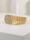 Gold Plated Pave & Baguette Studded Adjustable Ring